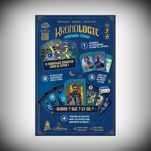 Dans le jeu Kronologic Babylon 2500, chaque joueur incarne un enquêteur cherchant à résoudre une affaire complexe avant ses adversaires.